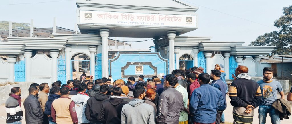 বেনাপোল প্রতিনিধি: যশোরের নাভারন আকিজ বিড়ি ফ্যাক্টরির তিন জন কর্মকর্তার অপসরন দাবিতে বিড়ি ফ্যাক্টরির মুল গেট বন্ধ করে বিক্ষোভ করেছে আকিজ বিড়ি ফ্যাক্টরির সকল ড্রাইভার ও তাদের সহকারিবৃন্দ। বুধবার সকালে নাভারন বিড়ি ফ্যাক্টরির মুল গেট বন্ধ করে আকিজ বিড়ি ফ্যাক্টরির সকল ড্রাইভার ও তাদের সহকারিবৃন্দ দূর্নিীতিবাজ ৩ কর্মকর্তার অপসরনের দাবিতে এ বিক্ষোভ করেন।