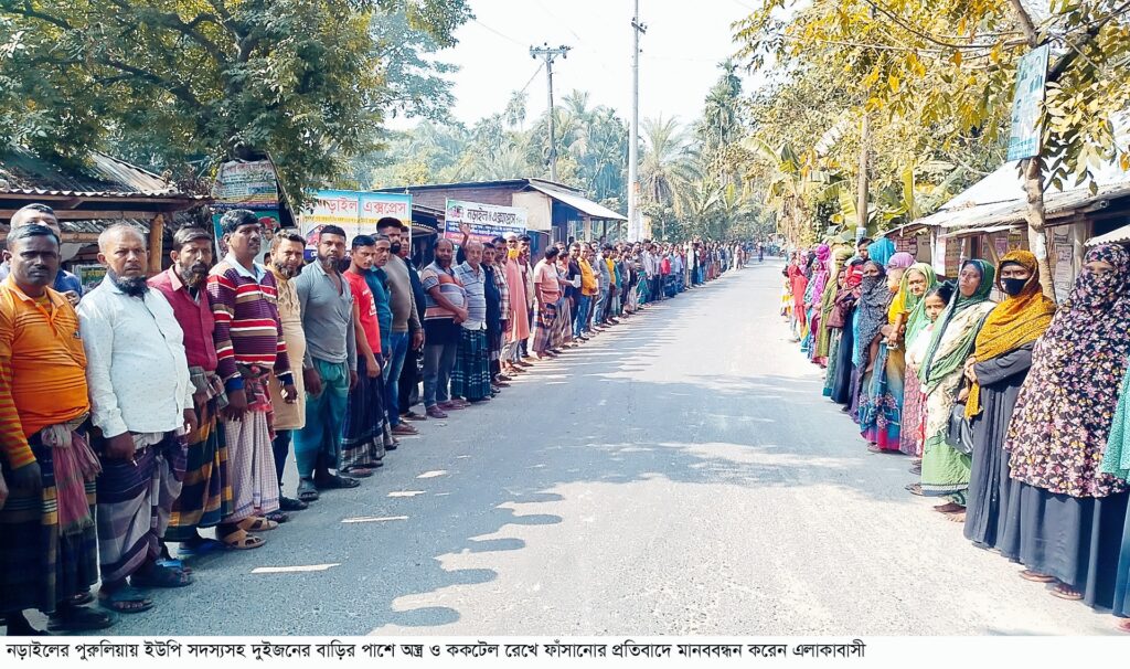 এলাকাবাসীর আয়োজনে বুধবার (২৬ নভেম্বর) দুপুরে পুরুলিয়া বাসস্ট্যান্ড মোড়ে এ মানববন্ধন ও বিক্ষোভ মিছিল অনুষ্ঠিত হয়। মানববন্ধনে বক্তব্য দেন-জনি বেগম, মুন্সেফ শেখ, ভুক্তভোগী আনিচুর রহমান ও খুরশিদ আলমসহ অনেকে।