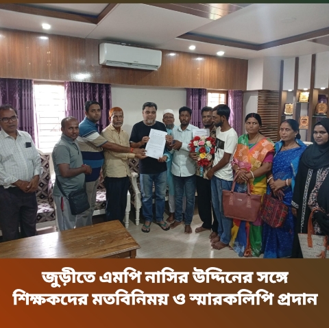 জুড়ী (মৌলভীবাজার) প্রতিনিধি: বাংলাদেশ বেসরকারি প্রাথমিক বিদ্যালয় শিক্ষক সমিতি, সিলেট বিভাগের উদ্যোগে মৌলভীবাজার-১ (জুড়ী–বড়লেখা) আসনের সংসদ সদস্য আলহাজ্ব নাসির উদ্দিন আহমেদের নিকট স্মারকলিপি প্রদান ও মতবিনিময় সভা অনুষ্ঠিত হয়েছে।