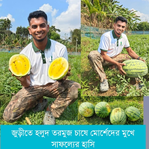 জুড়ীতে হলুদ তরমুজ চাষে তাক লাগিয়েছেন তরুণ উদ্যোক্তা খোর্শেদ