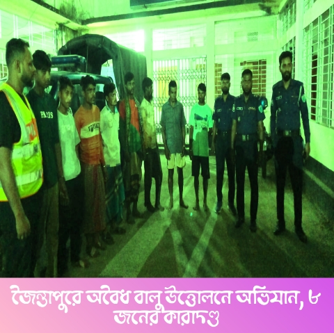 অভিযানে নদীর পাড় ও ফসলি জমি কেটে অবৈধভাবে বালু উত্তোলনের দায়ে ৮ জনকে আটক করা হয়। ভ্রাম্যমাণ আদালত তাদের মধ্যে ৭ জনকে বাংলাদেশ বালুমহাল ও মাটি ব্যবস্থাপনা আইনে সর্বনিম্ন ৩ দিন থেকে সর্বোচ্চ ৩ মাসের কারাদণ্ড দেন। অপর একজনের বয়স ১৭ বছর হওয়ায় তাকে মামলার মাধ্যমে আদালতে সোপর্দ করা হয়েছে।