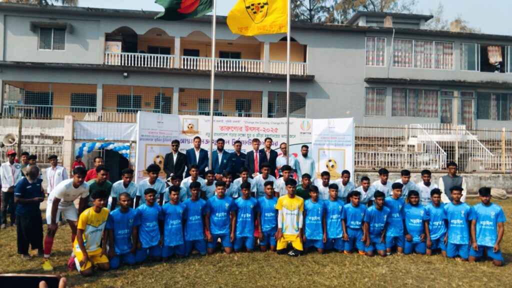 নড়াইল প্রতিনিধি: নড়াইলে “এসো দেশ বদলাই, পৃথিবী বদলাই” এ শ্লোগানকে সামনে নিয়ে তারুণ্যের উৎসব-২০২৫ উপলক্ষ্যে নতুন বাংলাদেশ গড়ার লক্ষ্যে আন্তঃকলেজ ফুটবল টুর্নামেন্ট-২০২৫ এর উদ্বোধন অনুষ্ঠিত হয়েছে।