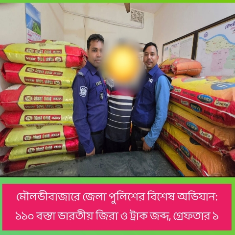 মৌলভীবাজার প্রতিনিধি: মৌলভীবাজারে জেলা পুলিশের বিশেষ অভিযানে বিপুল পরিমাণ ভারতীয় জিরা জব্দ করা হয়েছে। অভিযানে একটি ট্রাকসহ মোট ১১০ বস্তা জিরা জব্দ করা হয় এবং এ ঘটনায় একজনকে গ্রেফতার করা হয়েছে।