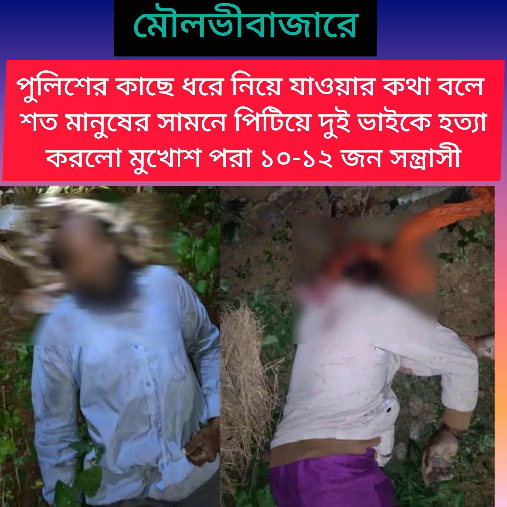 মৌলভীবাজার প্রতিনিধি: মৌলভীবাজারের বড়লেখায় পুলিশের হাতে তুলে দেওয়ার কথা বলে জোর করে ধরে নিতে চাইলে পালিয়ে বাড়িতে যাওয়ার সময় পিছন থেকে দৌড়িয়ে গিয়ে সহোদর দুই ভাই কে প্রথমে দুইজন পরবর্তীতে ১০-১২ জনের একটি দল এলাকাবাসীর সামনেই পিটিয়ে নির্দয় ভাবে মধ্যযুগীয় কায়দায় হত্যা করেছে বলে অভিযোগ উঠেছে। এ সময় আহত অবস্থায় একজন সিলেটে চিকিৎসাধীন, তবে সে কোন গ্রুপের এটা প্রাথমিকভাবে নিশ্চিত করা সম্ভব হয়নি।