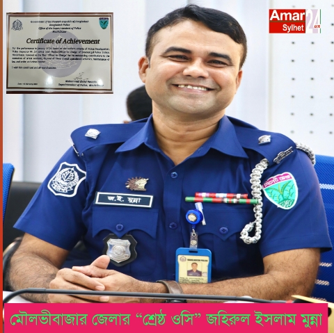 মৌলভীবাজার জেলার “শ্রেষ্ঠ ওসি” শ্রীমঙ্গল থানার জহিরুল ইসলাম মুন্না