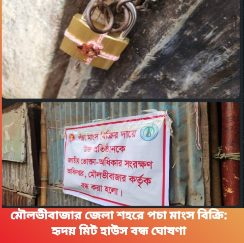 মৌলভীবাজার জেলা শহরে পচা মাংস বিক্রি: হৃদয় মিট হাউস বন্ধ ঘোষণা