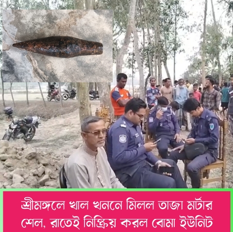 শ্রীমঙ্গলে খাল খননে মিলল তাজা মর্টার শেল, রাতেই নিষ্ক্রিয় করল বোমা ইউনিট