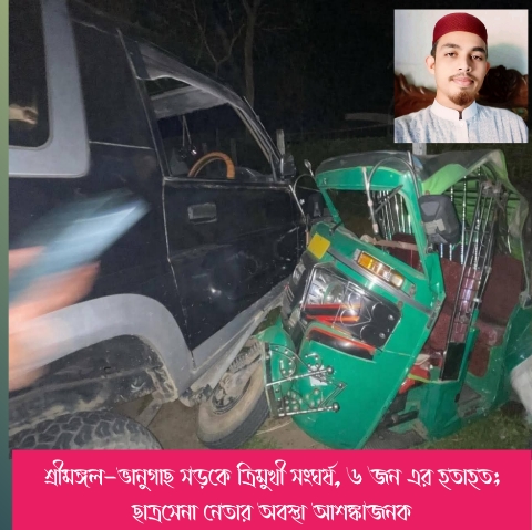 মৌলভীবাজার প্রতিনিধি: মৌলভীবাজারের শ্রীমঙ্গল-ভানুগাছ সড়কের বিটিআরআই এলাকায় জিপ, সিএনজি ও মোটরসাইকেলের মধ্যে ভয়াবহ ত্রিমুখী সংঘর্ষের ঘটনা ঘটেছে। এতে মোট ৬ জন হতাহত হয়েছেন।