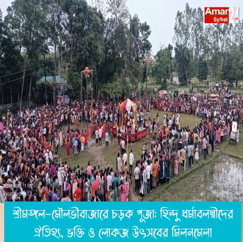 স্টাফ রিপোর্টার: মৌলভীবাজারের শ্রীমঙ্গলসহ আশপাশের বিভিন্ন এলাকায় চৈত্র সংক্রান্তি উপলক্ষে পালিত হয়েছে হিন্দু ধর্মাবলম্বীদের প্রাচীন লোকজ উৎসব চড়ক পূজা। ভক্তি, ত্যাগ ও গ্রামীণ সংস্কৃতির সমন্বয়ে এ উৎসবকে ঘিরে ব্যাপক উৎসাহ-উদ্দীপনা লক্ষ্য করা গেছে।