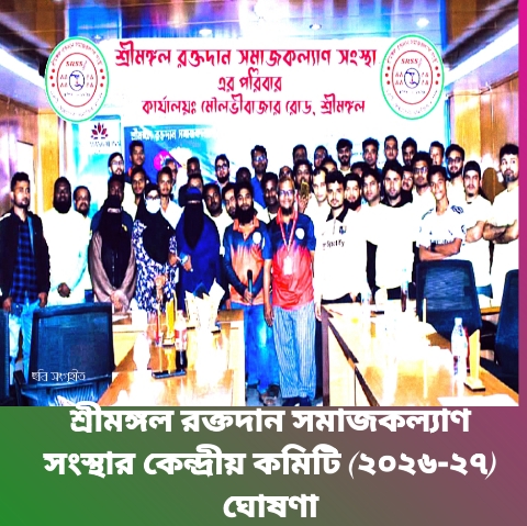 স্টাফ রিপোর্টার: “স্বেচ্ছায় করি রক্তদান, হাসবে রোগী বাঁচবে প্রাণ”—এই স্লোগানকে ধারণ করে মৌলভীবাজারের শ্রীমঙ্গলে কার্যক্রম পরিচালনাকারী স্বেচ্ছাসেবী সংগঠন শ্রীমঙ্গল রক্তদান সমাজকল্যাণ সংস্থা-এর কেন্দ্রীয় কমিটি (২০২৬–২০২৭) ঘোষণা করা হয়েছে।