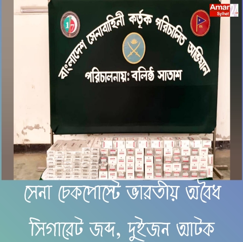 রেজওয়ান করিম সাব্বির, জৈন্তাপুর (সিলেট): সিলেটের জৈন্তাপুর উপজেলার হরিপুর গ্যাস ফিল্ড এলাকায় সেনাবাহিনীর চেকপোস্টে অভিযান চালিয়ে বিপুল পরিমাণ ভারতীয় অবৈধ সিগারেট জব্দ করা হয়েছে। এ সময় পাচারের সঙ্গে জড়িত দুইজনকে আটক করা হয়।